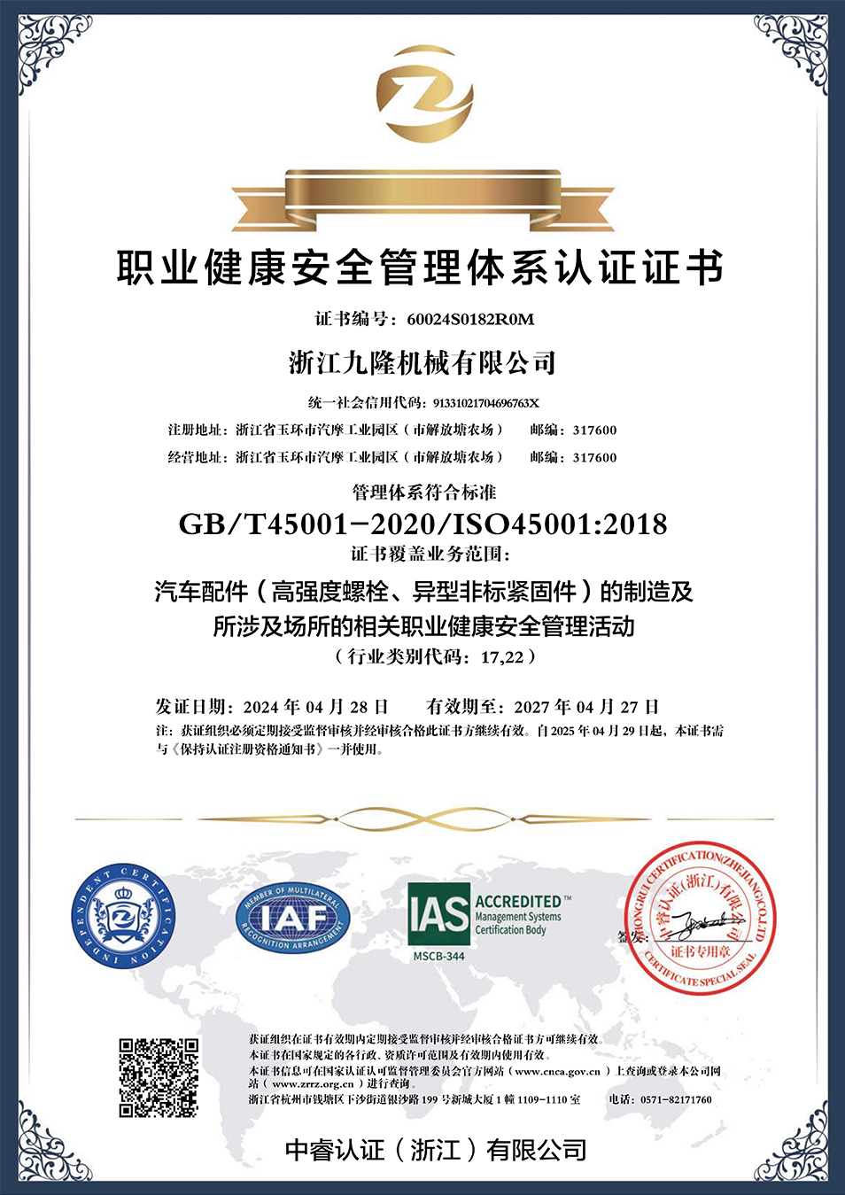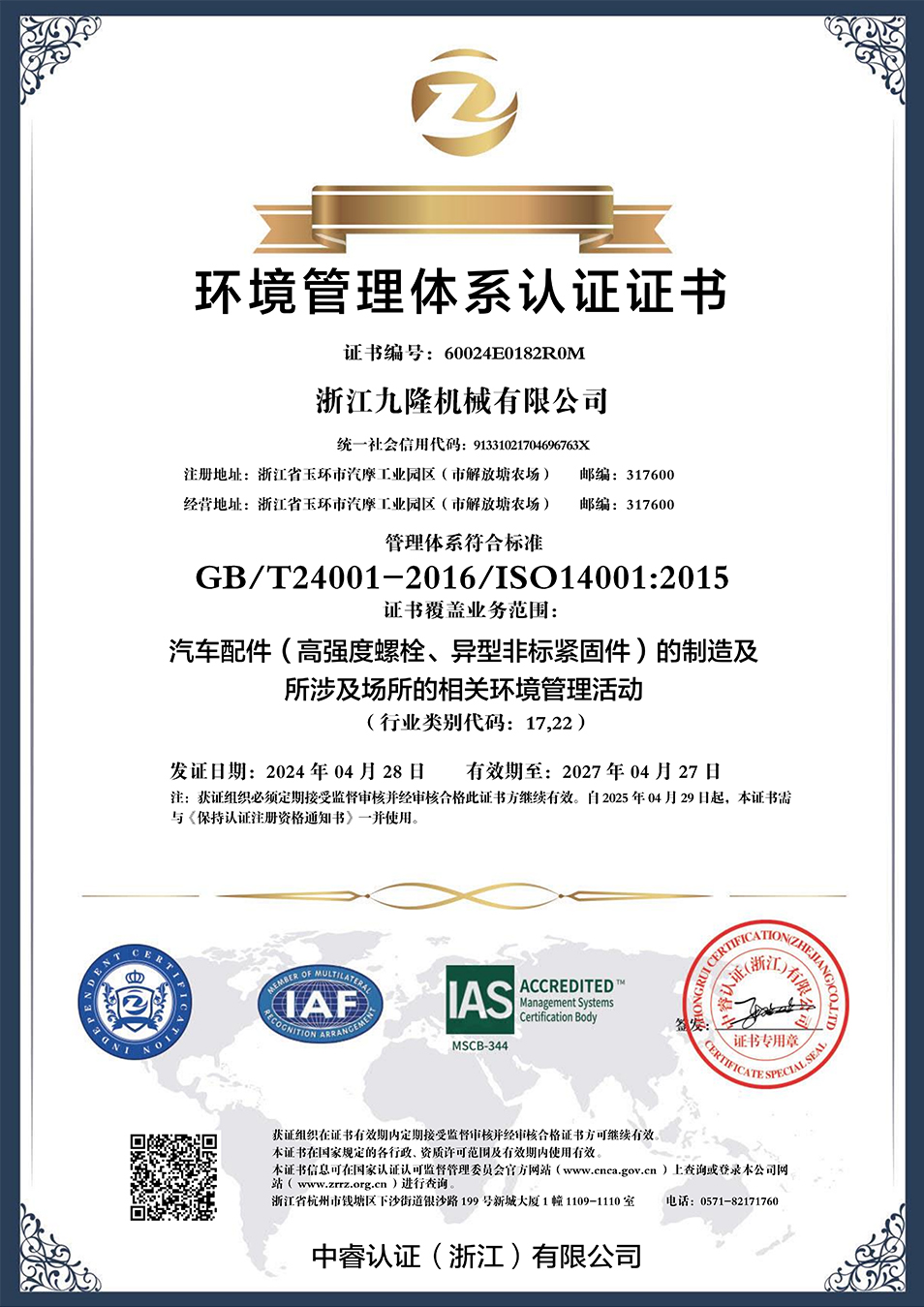 IATF16949質(zhì)量管理體系認(rèn)證、ISO14001 環(huán)境管理體系認(rèn)證、ISO45001職業(yè)健康安全管理體系